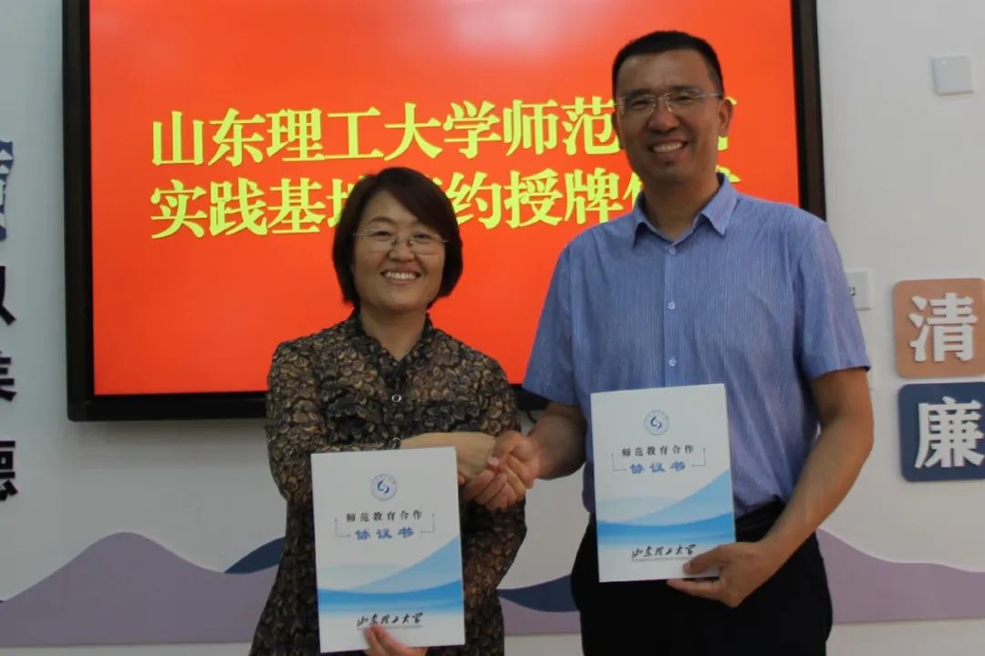 2023年6月16日上午,williamhill英国院长郑兆青、物理与光电工程学院院长孙玉萍、副院长尹广超、物理系主任杨兴华来到周村区王村中学看望实习学生,并与王村中学签约师范教育实习实践基地,同时举行授牌仪式,王村中学校长周谋远与学校领导班子出席仪式。