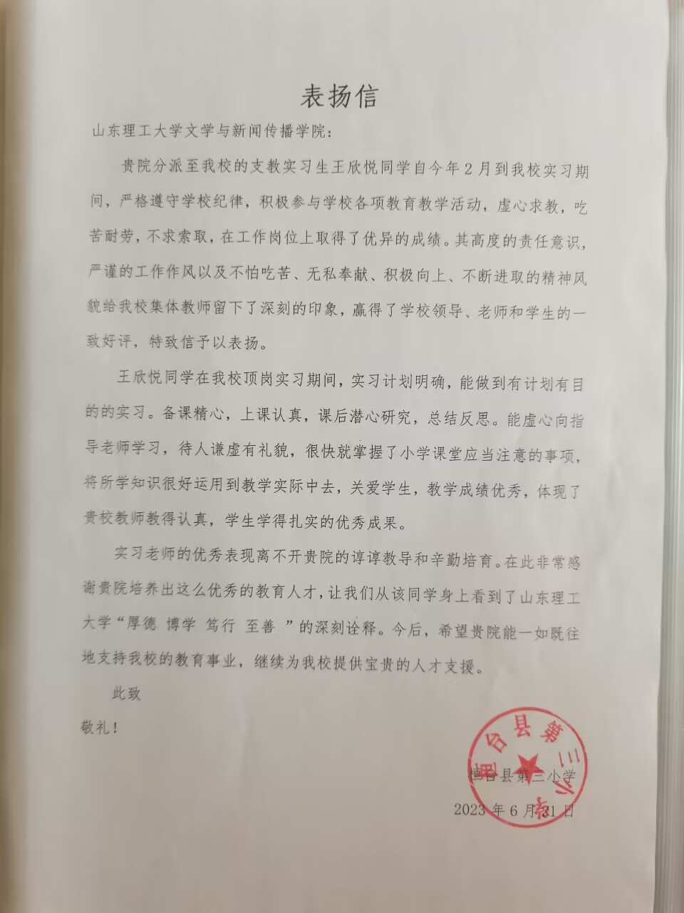 表扬信-王欣悦(文学)