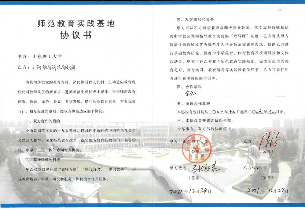 学校与三研教育科技有限公司(文华学校)签约师范教育实践基地