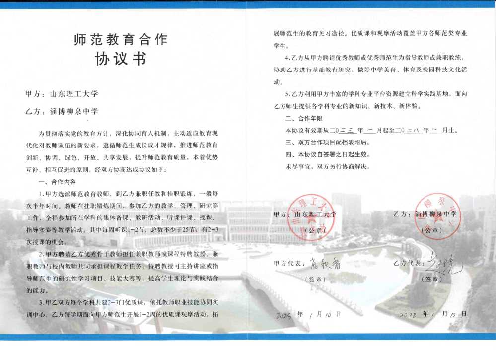 学校与淄博柳泉中学签约师范教育合作协议