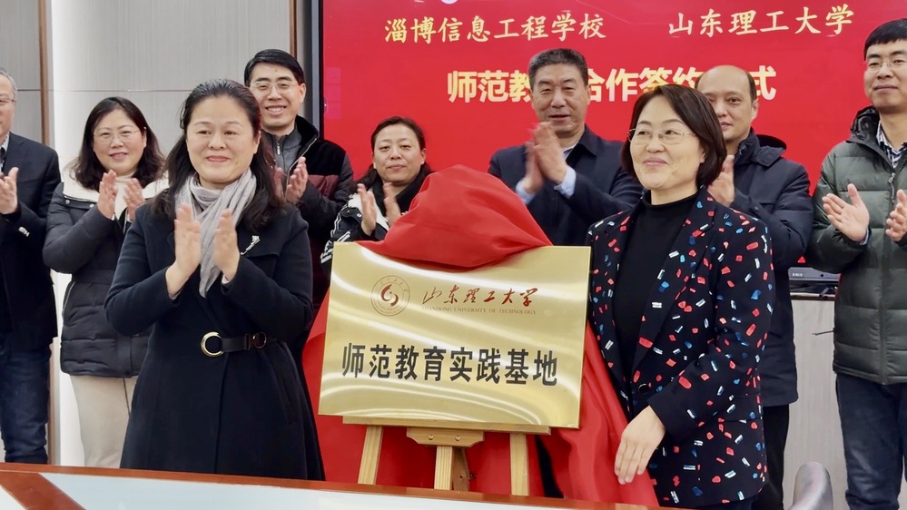 williamhill英国院长郑兆青、淄博信息工程学校校长张林丽代表双方签订职教师范教育合作协议。随后,在与会人员的见证下,郑兆青、张林丽共同为师范教育实践基地揭牌。