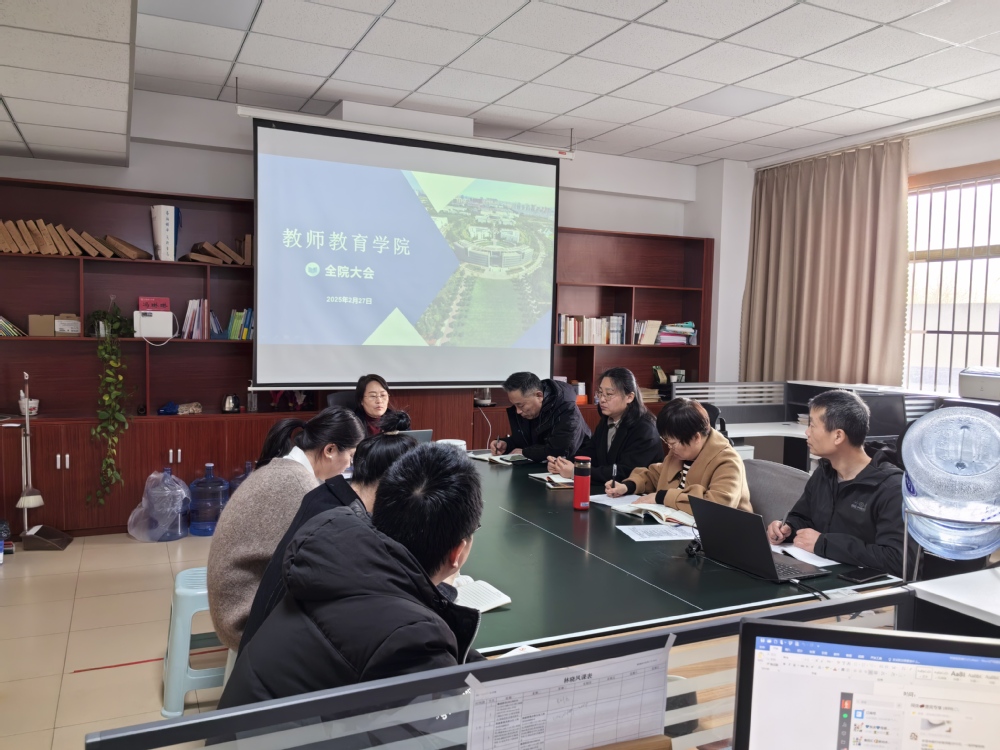 针对学院本年度工作思路,郑兆青强调,要根据学校“攻坚跃升年”的总体要求和部署,结合学院实际,坚持以教师教育类师资队伍和课程建设为重点,深化师范生培养体制机制,推动学校师范专业内涵建设,努力为学校师范教育做出更多贡献。针对近期主要工作,一是倡导大家要主动适应DeepSeek等人工智能技术应用发展,对教学设计、作业布置、学业评价等及时做出针对性的调整和优化,提高教育教学效果;二是大力弘扬教育家精神,做师德师风建设模范,营造风清气正的育人环境;三是充分发挥教研室的凝聚力和组织力,深入推进以学为中心的教学范式改革,有组织的推动学院教科研工作。