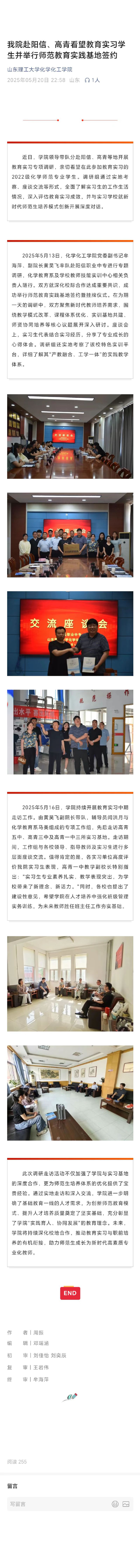 化学化工学院赴阳信、高青看望教育实习学生并举行师范教育实践基地签约